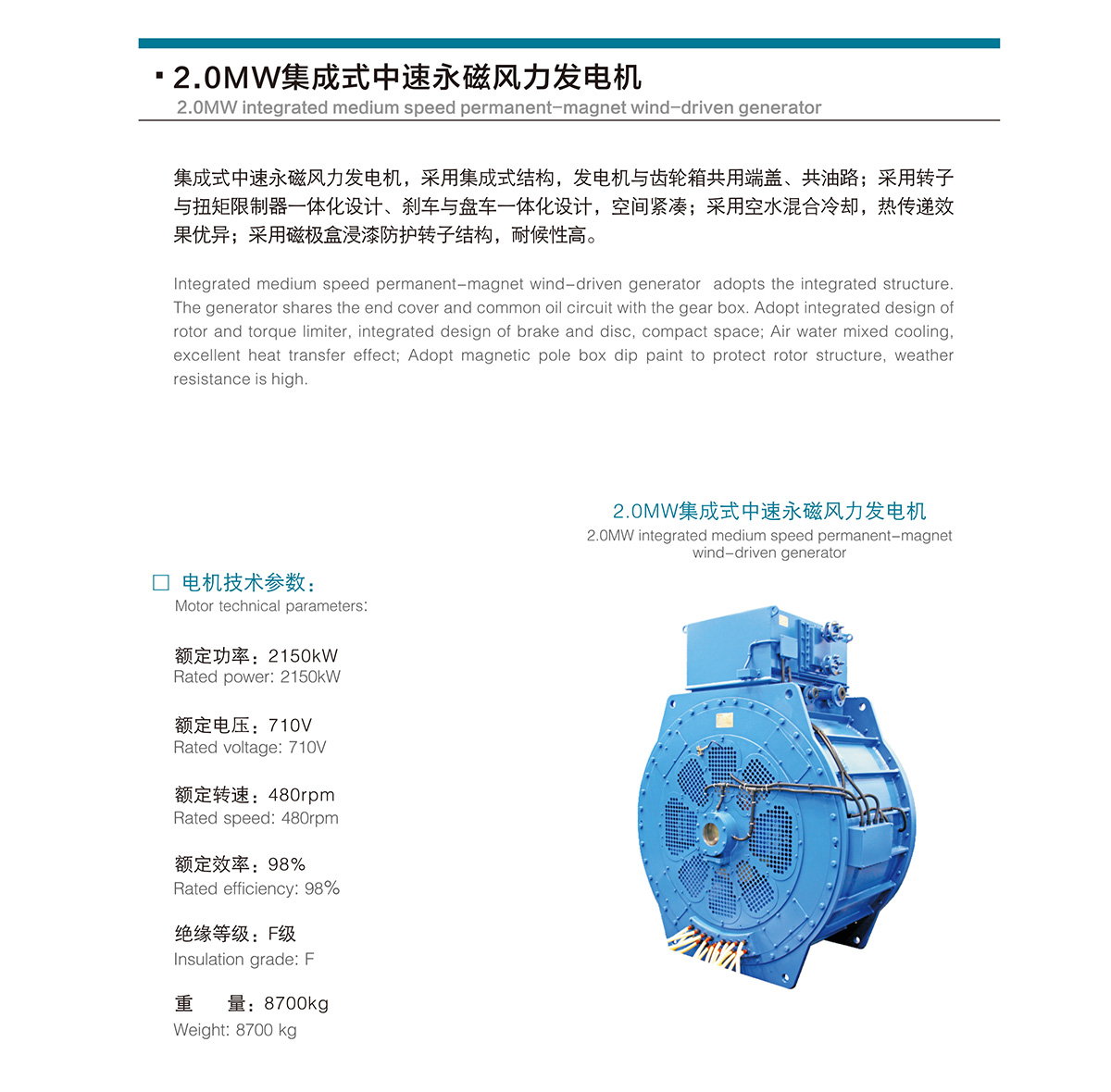 2.0MW集成式中速永磁风力发电机