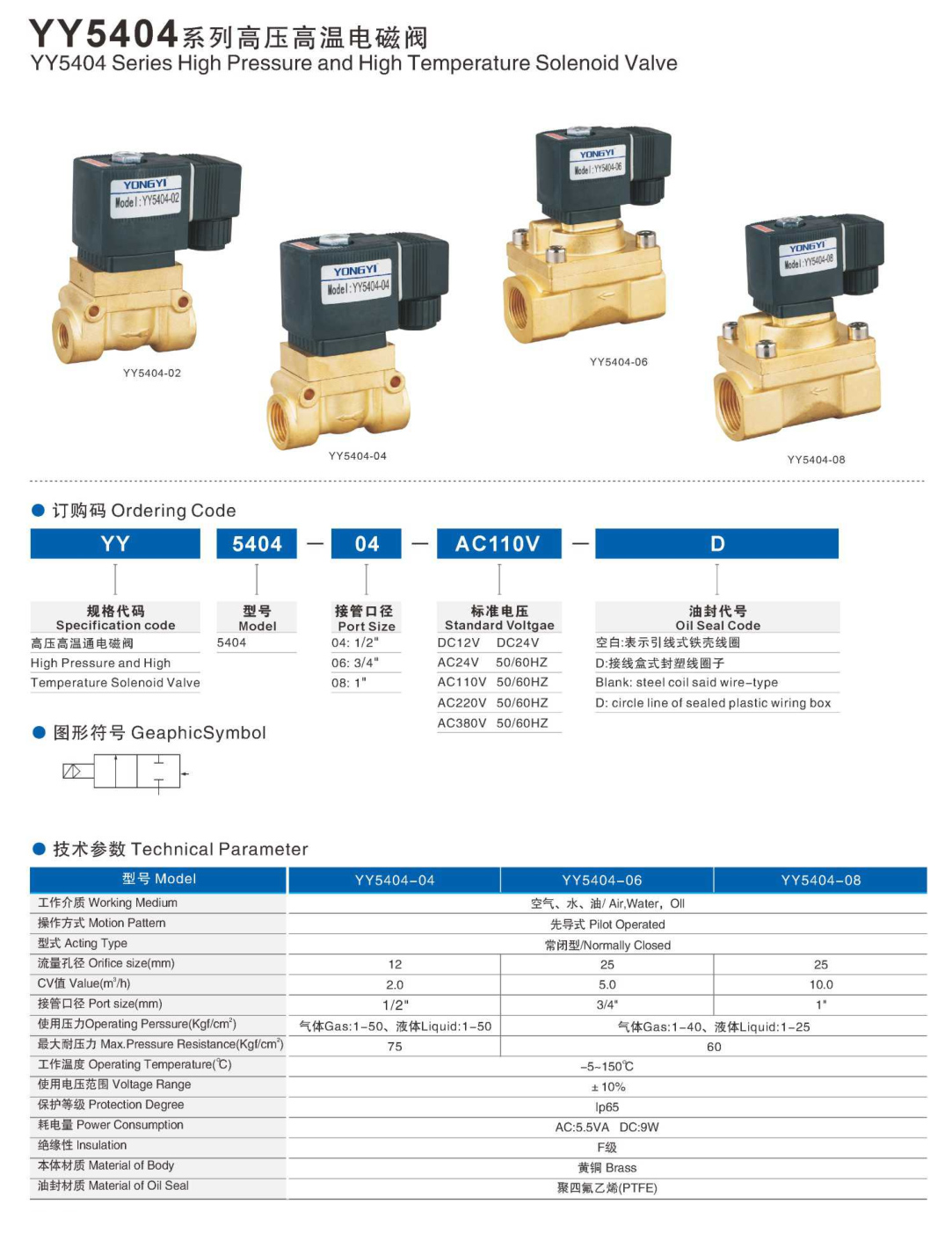 YY5404 Series High Pressure and Hign Temperature Solenoid Valve