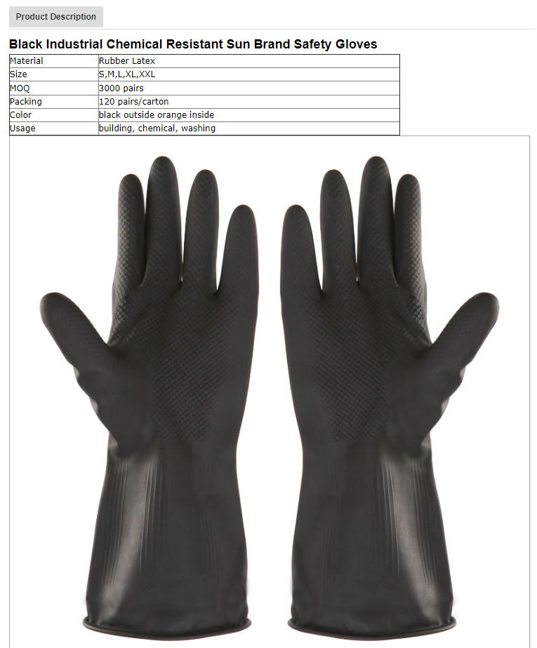 Black Industrial Chemical Resistant Safety Gloves