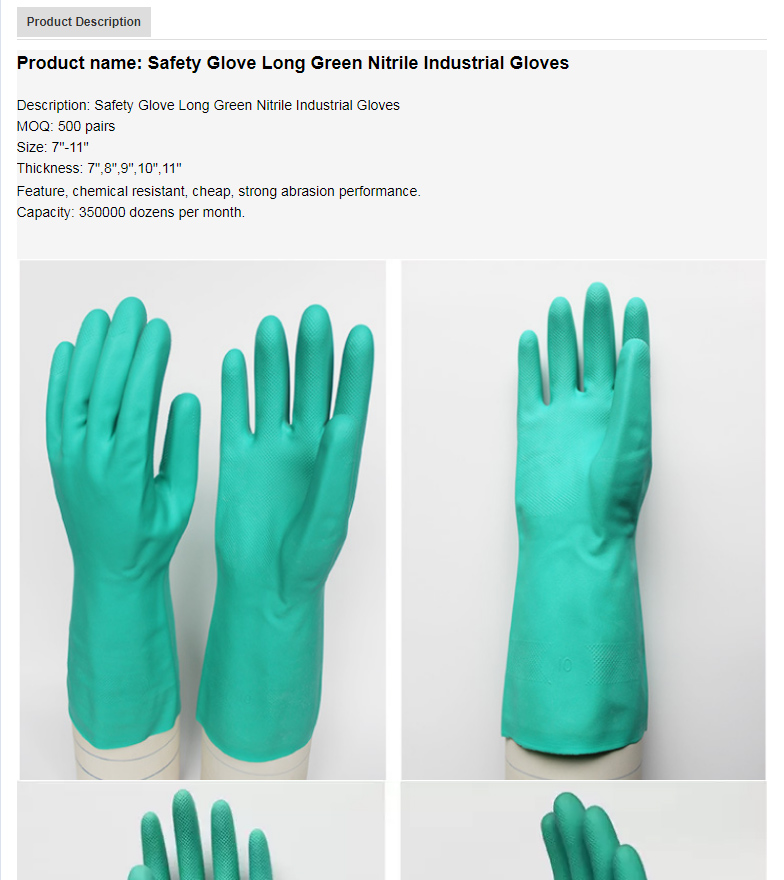 Safety Glove Long Green Nitrile Industrial Gloves