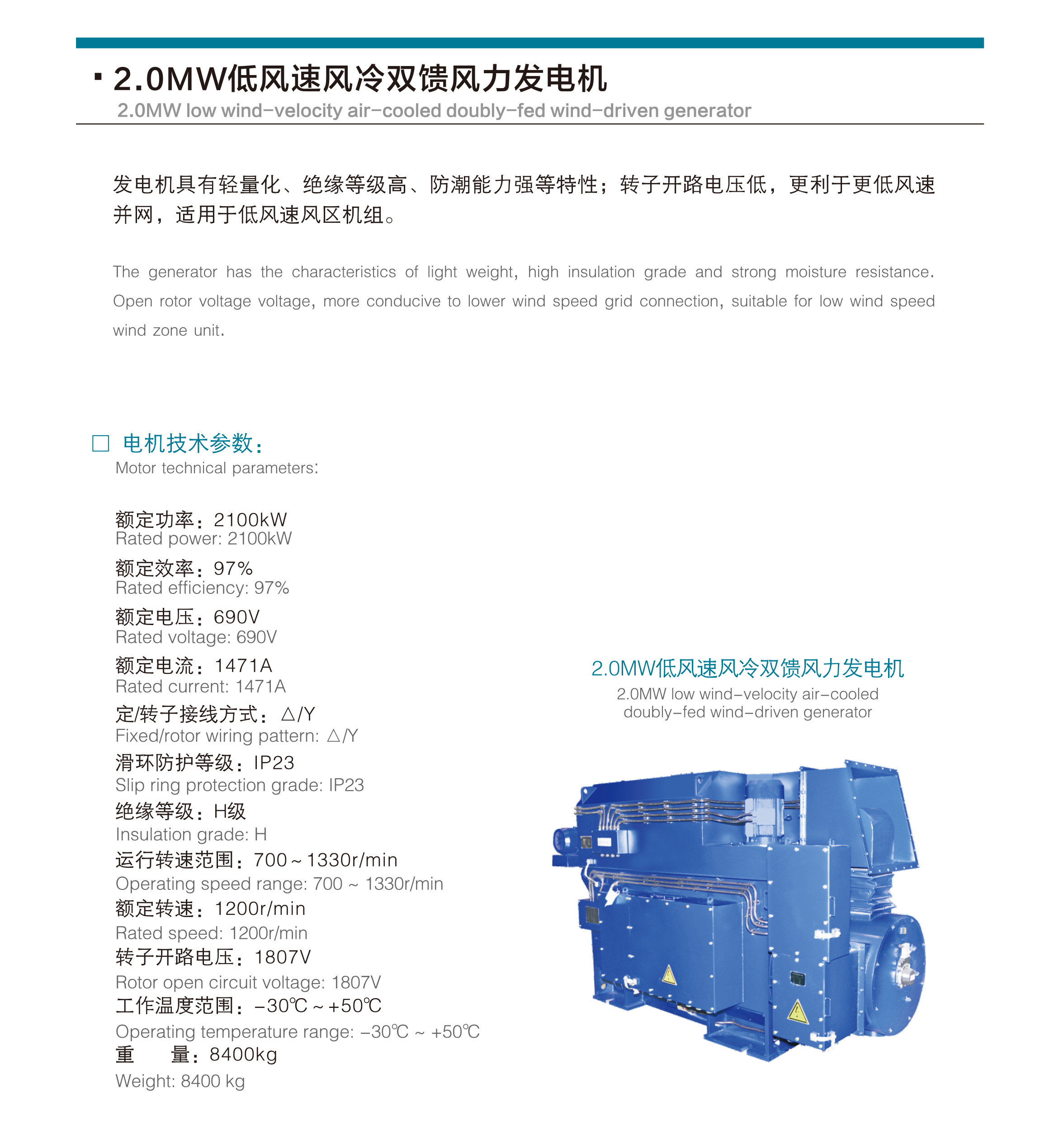 2.0mw low wind-velocity air-cooled doubly-fed wind-driven generator
